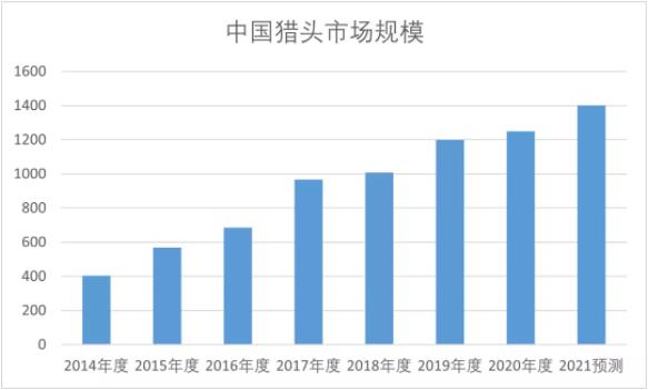 国家统计局发布数据显示我国GDP一季度同比增长18.3,基于这个数据分析,我们进行一个大胆的预测,今年全国各大行业已经基本进入正常运营,随着疫苗就位全球经济的复苏,预计2021年猎头行业市场规模将上升至1400亿左右。